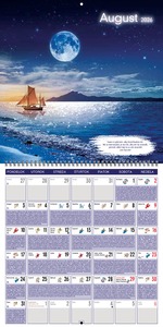 14 lapos (címlap + 12 oldal belív + hátlap), egyoldali nyomás, 12 színes képpel. Spirálozott, emblémázható, PE tasakban.