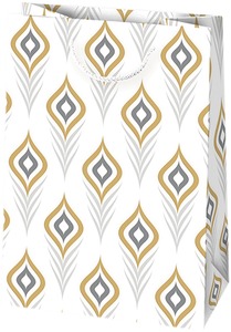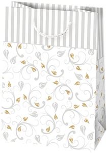 Dísztasak, glitteres Daisy fehér, arany-ezüst minta