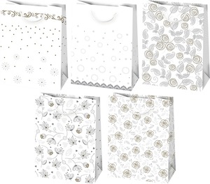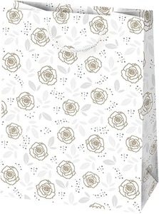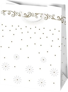 Dísztasak, glitteres Daisy fehér, arany-ezüst minta