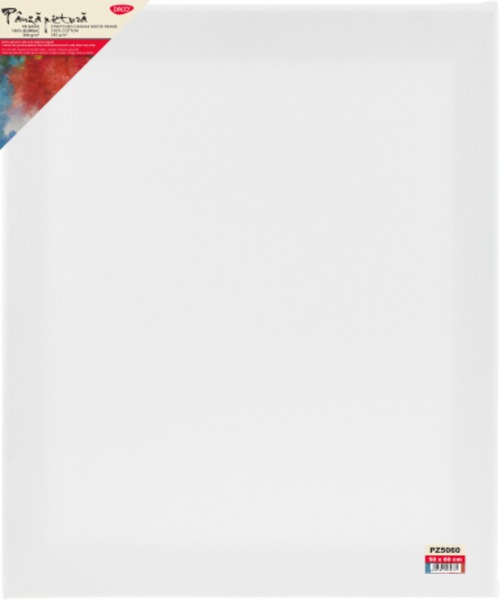 380 g-os, 100% pamut, fa keretre feszített vászon, három rétegű univerzális alapozással. Olaj-, akril- és gouachefestésre egyaránt alkalmas. Ékráma mérete: 16x24 mm.
