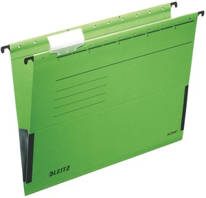 250 g-os merev zöld karton alapanyag. Zárt függőmappa az iratok kicsúszásának megakadályozására. 6 cm hosszú címketartó, változtatható címkeállással. Fém fülek, 330 mm-es fesztávolság. V-alakú gerinccel, kb 150 db A/4-es dokumentum tárolására alkalmas.
