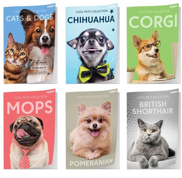 52 lapos kiváló minőségű füzet. 80 g-os hófehér belív, 300 g-os borítóval. 6 minta / kollekció.