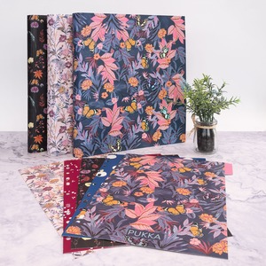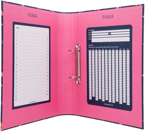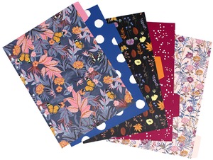 Karton bevonatú, mintás gyűrűskönyv. 2 D gyűrűvel. Belül praktikus regiszterrel. 5 mintás elválasztólappal.