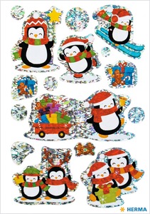 Matrica, karácsonyi, prizmás Herma "Magic" Winter Penguins