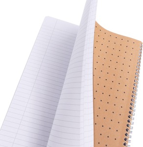 80 g-os, magas minőségű fehér papír. Karton borító. Perforált és lyukasztott vonalas lapok. Dupla spirálozás.
