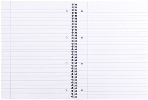80 g-os, magas minőségű fehér papír. Metál nyomott karton borító. Perforált és lyukasztott vonalas lapok. Dupla spirálozás.