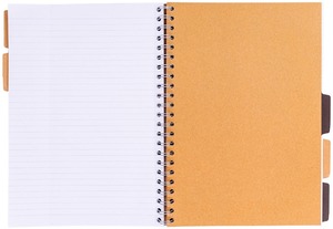 80 g-os, magas minőségű fehér papír. Karton borító. Perforált és lyukasztott vonalas lapok. Dupla spirálozás.