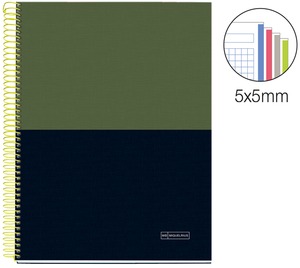 Spirálfüzet A/4 4x35 lapos, négyzetrácsos MQ "Rider" Green