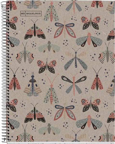 Újrahasznosított karton fed- és hátlap. 80 g-os, 100 %-ban újrahasznosított belívek (Blue Angel és EU Ecolabel tanúsítványok). Mikroperforált és lyukasztott lapok. Önmagába visszaforduló spirálozás