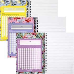 80 g-os, magas minőségű fehér papír. Karton borító. Perforált, lyukasztott vonalas lapok. Dupla spirálozás.