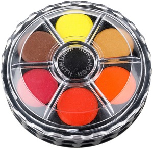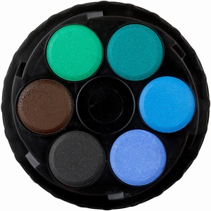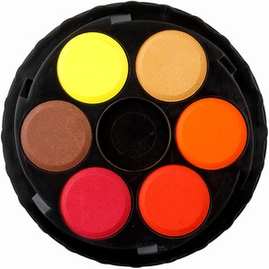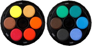 Kerek, műanyag dobozos vízfesték. Visszacsavarható fedő.