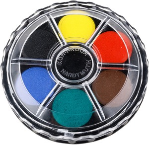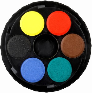 Kerek, műanyag dobozos vízfesték. Visszacsavarható fedő.