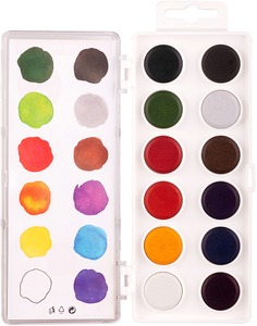 Élénk színű, műanyag tokos vízfesték.