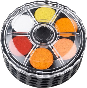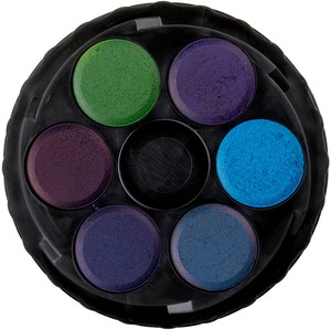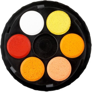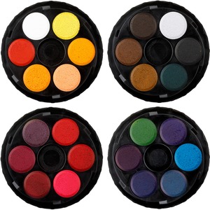 Kerek, műanyag dobozos vízfesték. Visszacsavarható fedő.